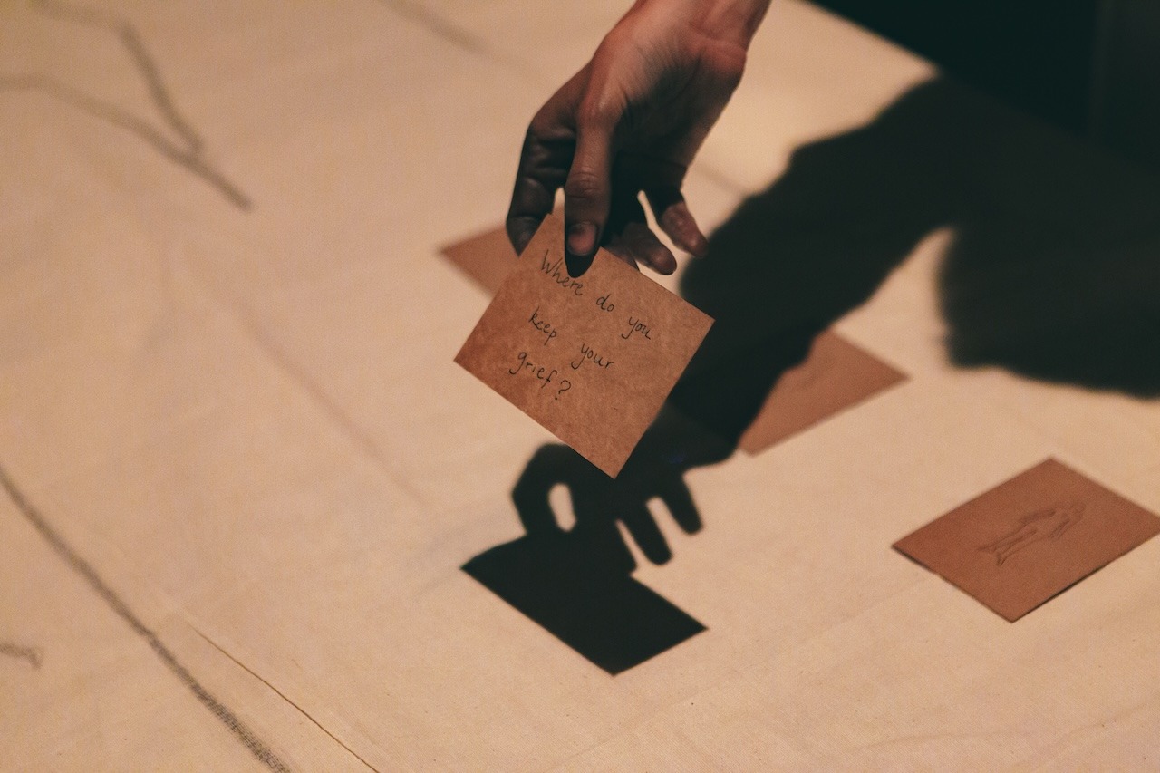 A Home for Grief is a collection of experiences made for one person at a time. A series of communal actions that search for ways to share grief across boundaries and histories. The experiences range across a sound-walk, an installation and a live 121 performance. In each work you hear the voices of women from different backgrounds speak on grief, loss and tenderness. The work is a subtle rebellion, affecting change in the ways we relate to each other through sound design, visual pieces and live interaction.