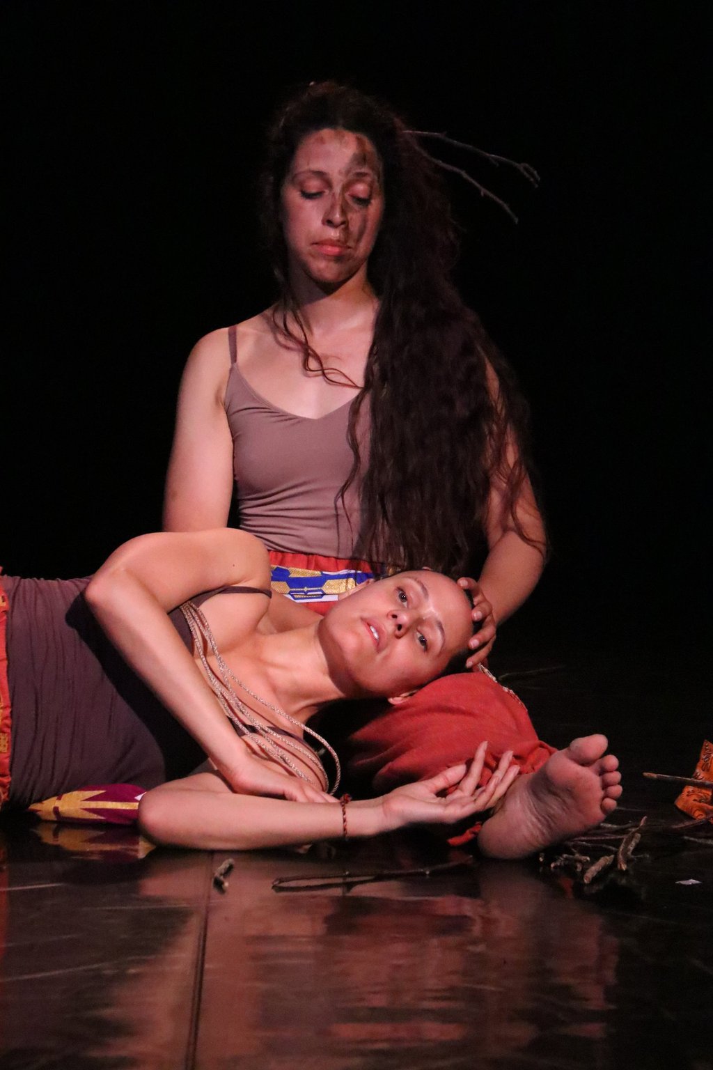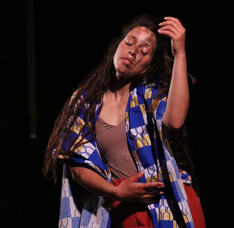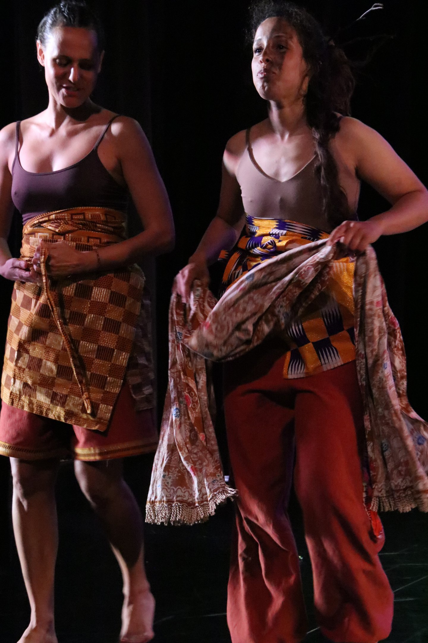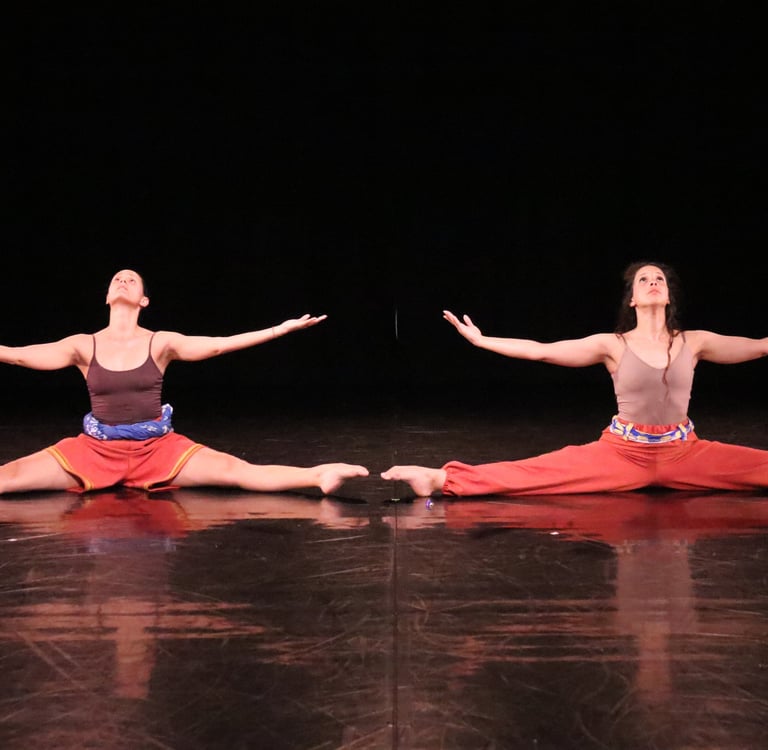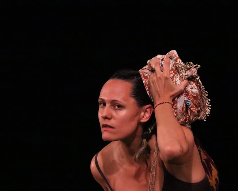 The work is a multilingual conversation held in Portuguese, English, movement, music and song. Standing in the shoes of their elders, two diasporans dance with the tensions of longing and inherited silences. They move with care, mischief and openness, calling for their ancestors to tell them who they are and how they belong.